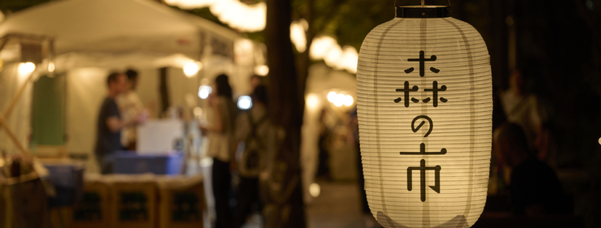 夕方になると大手町の森の通路に屋台の灯りがともり、森の市の夜の部が始まります。あたたかな光に照らされて人々が夏を楽しむ光景はまさに、懐かしい夏の縁日の景色でした。