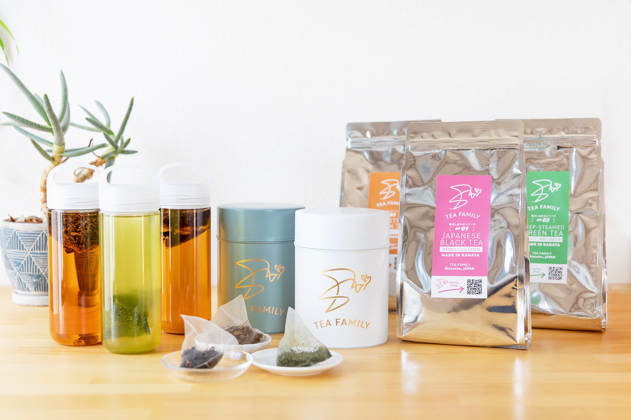 「水筒専用のティーバッグ茶」TEA FAMILYが初出展!茶農家自慢のお茶を、職場のマイボトルや家族の水筒に。いつものお茶がおいしくなればきっと笑顔が増えますよ。お茶グッズ&お菓子も販売。