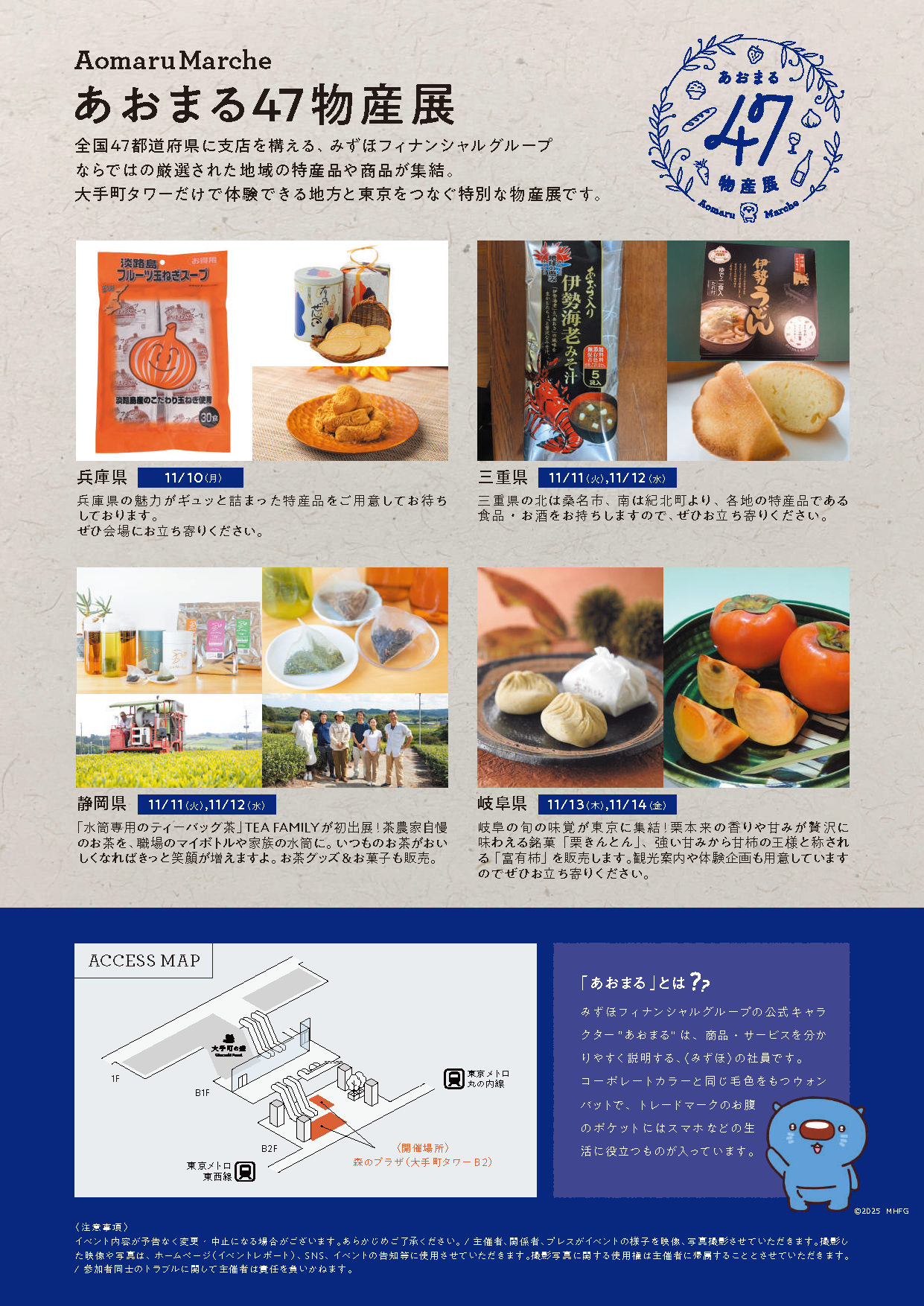 【あおまる47物産展】日本全国の名産品が東京・大手町タワーに集結 ~第九弾~|11月10日(月)~14日(金)