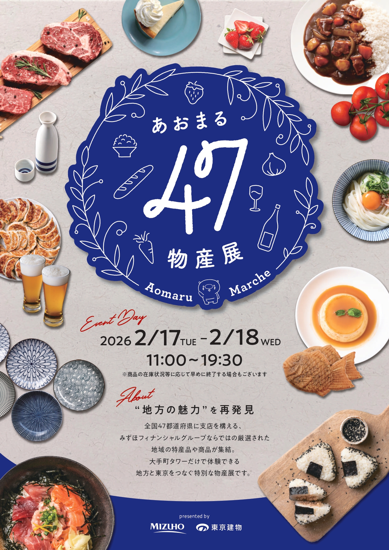 https://the-otemachi-tower.com/wp-content/uploads/web-3.png 345 510 webadmin https://the-otemachi-tower.com/wp-content/uploads/logo_h_07.svg webadmin2026-02-09 09:00:072026-02-08 18:48:39【あおまる47物産展】日本全国の名産品が東京・大手町タワーに集結 ~第十一弾~|2月17日(火)~18日(水)