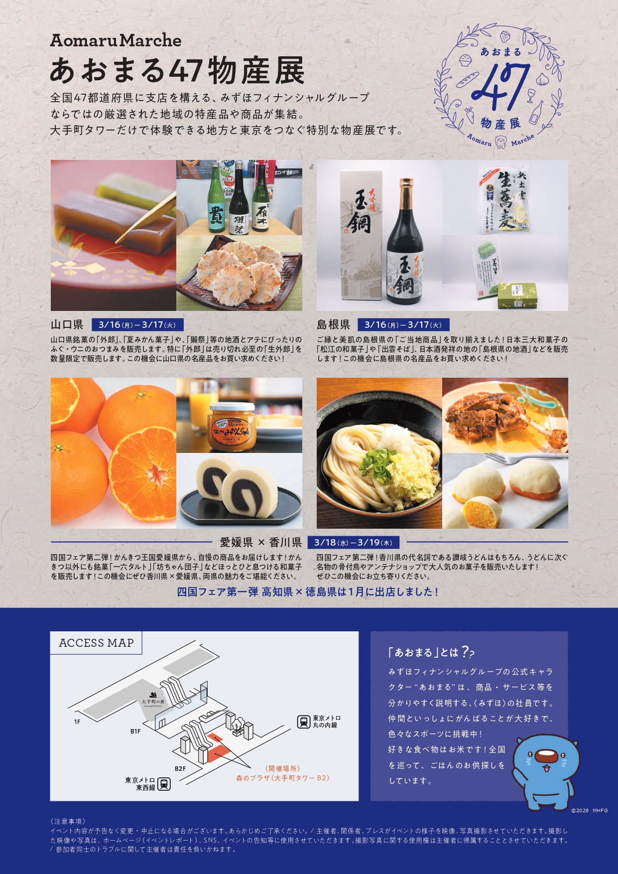 今回は第十二弾となります。2026年3月16日(月)〜19日(木)に山口県・島根県・愛媛県・香川県の名産品が出展されます。